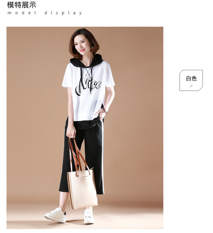 拼接显瘦;上衣半袖纯棉体恤;中长款;宽松休闲;带帽;短T;女